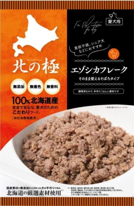 北海道産のエゾシカ肉を与えやすいフレークにしました。