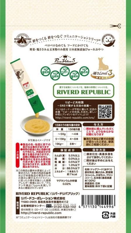 ペロペロなめても フードにかけても 野菜・鶏ささみ&玄米粉のみ使用 日本産無添加ぴゅ〜れおやつ 自社工場から直送 絆をつくる 絆をつなぐ コミュニケーショントリーツ